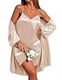 - 【Materiale】 Il set di vestaglia da pigiama Cami era realizzato in tessuto satinato, lucido e liscio al tatto, leggero, delicato sulla pelle e confortevole.