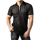 - Design alla moda: questa camicia sexy da uomo vuota in pizzo presenta un motivo in pizzo, maniche corte, colore solido, chiusura a bottoni e design con colletto cubano per uno stile casual ed elegante. Secondo la tendenza della moda e soddisfa le esigenze contemporanee.
