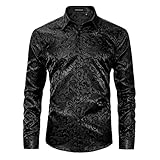 - CARATTERISTICHE - Camicia elegante da uomo a maniche lunghe slim fit con polsini con bottoni, tessuto liscio e confortevole simile alla seta, camicia abbottonata con risvolto dalla vestibilità regolare per la festa in discoteca