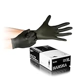 HANSKA 100 Guanti Monouso Nitrile Neri - Senza Polvere - Usa e Getta- Ambidestri - Non Sterili - Base di Gomma - Adatti per Ambiti Medici, Manipolazione degli Alimenti (100, XL)