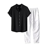 Generico Set da Uomo in Cotone e Lino Casual da Spiaggia Abiti da Yoga Abito Elegante con Camicia Henley Estivi Completo Manica Corta e Pantaloni,estivo uomo