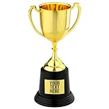 - Alta Qualità: Realizzati con materiali atossici e sicuri in plastica PP, i nostri mini coppe trofeo sono disponibili in una bella finitura dorata e dispongono di un'altezza eccellente, consentendo ai giovani vincitori di portarli con sé senza sforzo alcuno, mentre cammino orgogliosamente con il loro premio in mano. In alternativa, sono incluse anche delle medaglie a nastro, facili da appendere al collo.