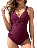• 【Costume Intero Donna】Il costume da bagno intero Push Up con scollo a V e design a incrocio frontale allunga il busto per un look elegante e modesto. Il design increspato in vita offre una certa copertura e allo stesso tempo è elegante. Le imbottiture rimovibili e i morbidi cuscinetti per il busto offrono un sostegno e un comfort moderati.
