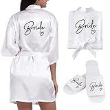 • 【Vestaglia damigella design e dimensioni】Vestaglie sposa damigelle team bride scollo a V, con cintura, stile sciolto, lunghezza XL 92cmsuitable per la maggior parte delle donne. Ciabatte sposa è 27×8cm - taglia unica.