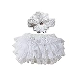 • Pretty Bloomers per copertine di pannolini: Otterrete 1 * pizzo Bloomers Bambina e 1 * fascia di capelli fiore. Il culotte neonata con strati di pizzo mutiple può coprire i pannolini, rendere il vostro bambino più beatutiful. E il costume fotografico neonato viene fornito con una fascia 3D top fiore per completare il look complessivo, rendere la tua ragazza dolce e alla moda.