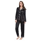 • Stile classico: Solo una tasca sul petto a sinistra. Questo pigiama donna è composto da una maglietta con maniche lunghe con bottoni e pantaloni con elastico in vita in materiale satinato, collo a revers, rifinito con un profilo a contrasto, offre una vestibilità comoda, con un design semplice e generoso