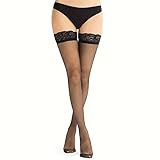 LUNALIGHT Calze Autoreggenti Donna sensuali Calze Sexy in Pizzo Ventagli con Pizzo Piedi Invisibili 20 Denari Naturale (IT, Testo, Taglia unica, Regular, Regular, NERO)