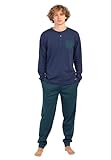 - ELEGANZA, COMFORT E DESIGN CURATO: Pigiama uomo in 100% top a maniche lunghe blu, con scollo tre bottoni e dettagli sul taschino, si abbina ai pantaloni verdi a righe per un tocco classico e raffinato