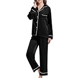 - DESIGN CLASSICO: Set pigiama in raso con una sola tasca sul petto sinistro, spessore: sottile, con parte superiore abbottonato a maniche lunghe + pantaloni in vita elasticizzati, materiale in raso, colletto dentellato attraente, rifinito con un bordo a contrasto, offre una vestibilità comoda, con un design semplice e generoso