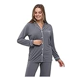 • Ottima Vestibilità e Funzionalità,I set di abbigliamento da casa da donna con bottoni sul davanti sono ispirati agli stili di abbigliamento maschile preferiti; La maglia a maniche lunghe è classica e comoda con un colletto dentellato, due tasche laterali per tenere vicini i piccoli oggetti e pantaloni a tutta lunghezza con elastico e coulisse in vita per una vestibilità perfetta. deliziose tubazioni adornano il rivestimento di questi pigiami leggeri, mantiene bella la buonanotte.