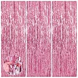 Accevo Tende Metalliche Tinsel Rosa.3 Pezzi 1x2.5M Tenda Frange Rosa Tenda Sfondo Fotografico per Sfondo Compleanno Happy Birthday Decorazioni Matrimonio Natale Decorazioni Compleanno.