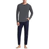 - DESIGN - Il pigiama da uomo cotone ha un taglio rilassato. Il top del pigiama presenta un risvolto classico e profili bianchi, tasche applicate e maniche lunghe. I pantaloni hanno un elastico in vita per un maggiore comfort e tasche laterali