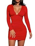 - CARATTERISTICHE: Vestito corto sexy di colore nero, aderente, maniche lunghe con scollo a V profondo, elasticizzato, pieghettato con lunghezza sopra il ginocchio. Il vestitino è anche elegante e molto comodo da indossare, si adatta perfettamente alle tue curve, ideale per autunno e inverno.
